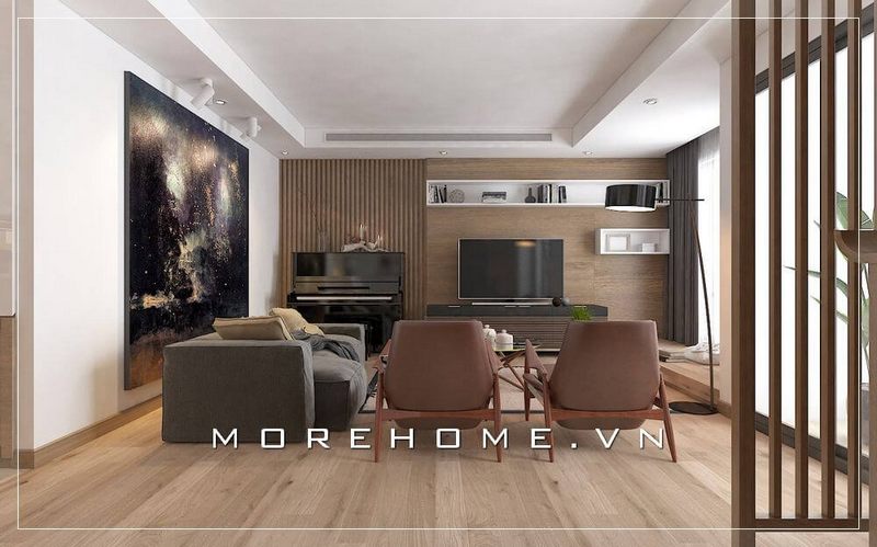 Thiết kế phòng khách hiện đại với nội thất gỗ tự nhiên trẻ trung, sang trọng