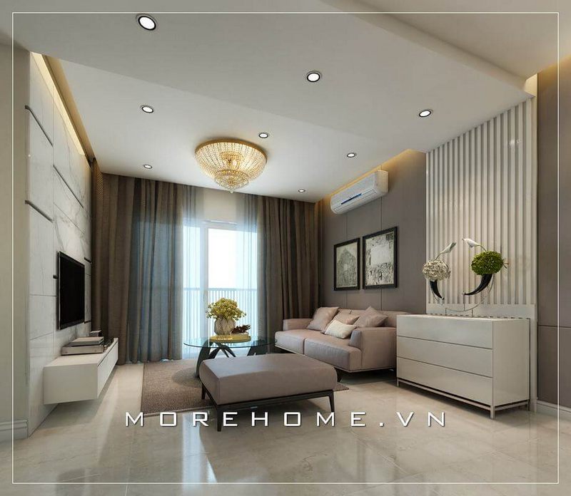 Trang trí nội thất với tone màu trắng mang đến không gian hiện đại, tinh tế cho phòng khách chung cư