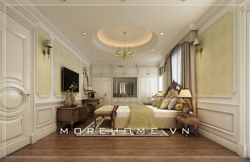>> Có thể nói, thiết kế nội thất tân cổ điển là một trong những dịch vụ hàng đầu của thương hiệu Nội thất MOREHOME, khởi đầu với ấn tượng đột phá trên thị trường khi có rất nhiều công trình được đánh giá cao ngay từ thời điểm xuất phát như: Keangname, Times City, Royal City, Vinhomes Riverside,... Nếu quý vị có nhu cầu về phong cách thượng lưu này, hãy liên hệ với chúng tôi để chuyên gia tư vấn.