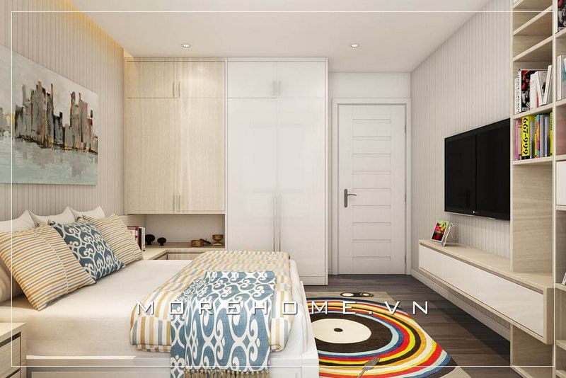 Phòng ngủ chung cư với diện tích không quá rộng nội thất thiết kế sao cho phù hợp phục vụ tốt cho quá trình sử dụng sinh hoạt hằng ngày của gia chủ