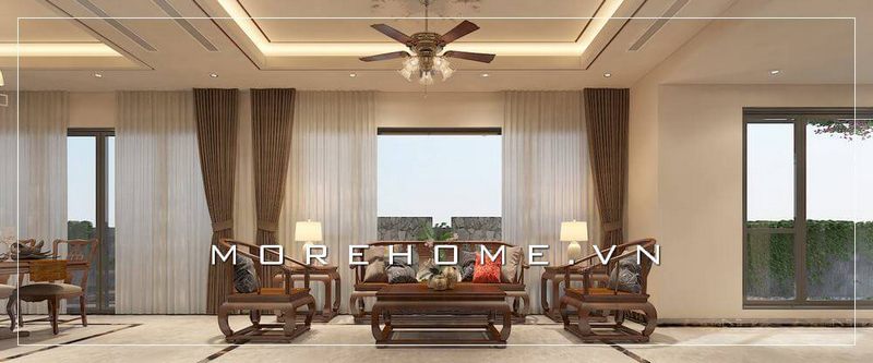 Thiết kế nội thất phòng khách gỗ tự nhiên cho không gian nhà phố, biệt thự cao cấp phong cách tân cổ điển sang trọng với từng đường nét, họa tiết vô cùng độc đáo