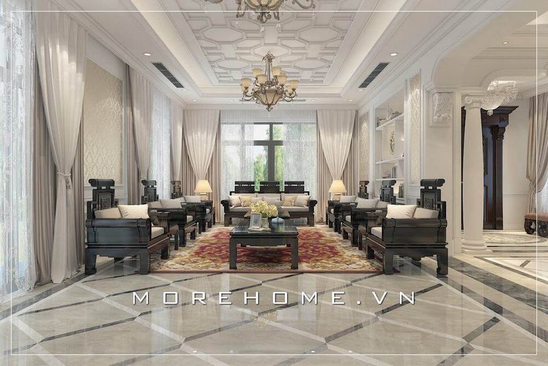 Mẫu thiết kế phòng khách biệt thự đẹp theo phong cách tân cổ điển hoàng gia sang trọng, đẳng cấp