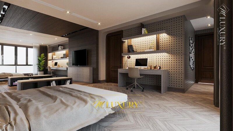 Mẫu phòng ngủ đơn giản nhưng đủ tiện ích này sẽ là lựa chọn tuyệt vời cho các phòng ngủ có diện tích nhỏ như căn hộ, nhà phố.